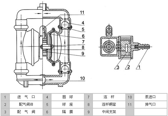 QYB型塑料氣動隔膜泵是為目前國內(nèi)最新穎的一種泵類,結(jié)構(gòu)簡單、拆修方便、送液穩(wěn)定、振動小、噪聲低、自吸能力強、輸送液體粘度高,具有自吸泵、潛水泵、屏蔽泵、泥漿泵和雜質(zhì)泵等輸送機械的許多優(yōu)點。采用壓縮空氣為動力源,對于各種腐蝕性液體,帶顆粒的液體,高粘度、易揮發(fā)、易燃、劇毒的液體,不易流動的液體均能予以抽光吸盡。其性能參數(shù)與聯(lián)邦德國的WLLDENPVMPS、美國的MARIOWPUMPS相近。已被國內(nèi)數(shù)萬家石油、化工、食品、醫(yī)藥、電子、陶瓷、紡織、釀造、造紙系統(tǒng)單位采用,安置在各種特殊場合,用來抽送種常規(guī)泵不能抽吸的介質(zhì),均取得了滿意的效果。